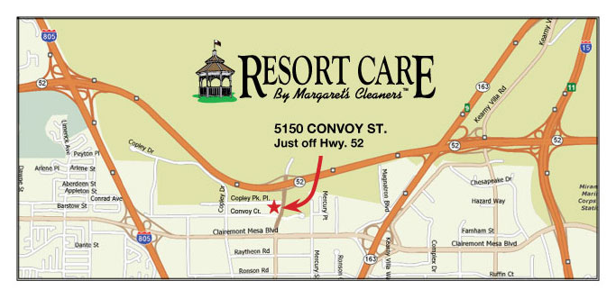 When you get off on Convoy, go south and turn right into the first parking lot after the Copley Park Place intersection at the Shell station. Our address is: Resort Care, LLC